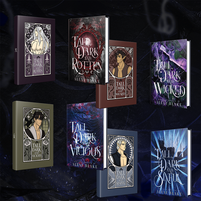 Four separate hardbacks, with matching case and jackets. (Tall Dark and Vicious, Tall Dark and Wicked, Tall Dark and Rotten, Tall Dark and Sinful.)