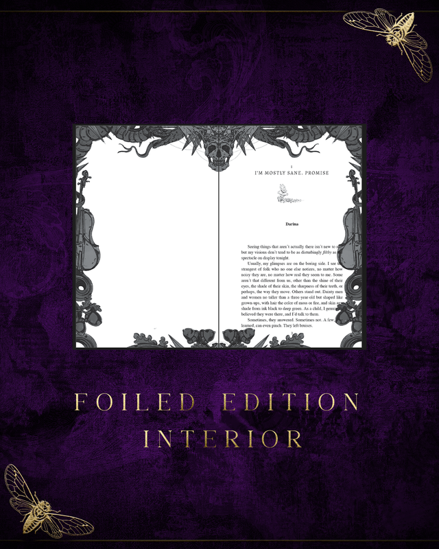 This feature an illustration as a case and the Lila Raymond dust jacket, foiled.